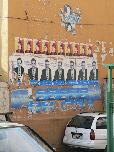 Finally, here are more images from our first few days of walking around Tirana: fallout from the February local elections, a scene from the local park near the University of Tirana and the U.S. Embassy housing compound, and a memorial to Osman Kazazi, former head of the Association of Ex-Political Prisoners. It reads “He devoted his life to the Fatherland”. “With great respect for Osman Kazazi.” Sadly, it’s tucked away on a dusty commercial side street.
