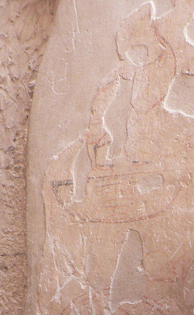 We then went into the tomb of Ramses I (ruled 1292 BC -1920 BC), which, after the tomb of Ramses IV, was not especially beautiful, and then the tomb of Ramses IX (ruled 1129 BC – 1111 BC) which, unlike the others, had hieroglyphics painted at the entrance. We were allowed to take pictures of these. One of the surprising things we saw were red and black lines on the plaster: after the tomb was carved out and the plasterers had covered the walls, the artists would draw the hieroglyphics to be carved into the plaster red ink. The master artists would then make any needed corrections in black ink. We could still see some of these ancient “proofreader’s marks” on the walls.